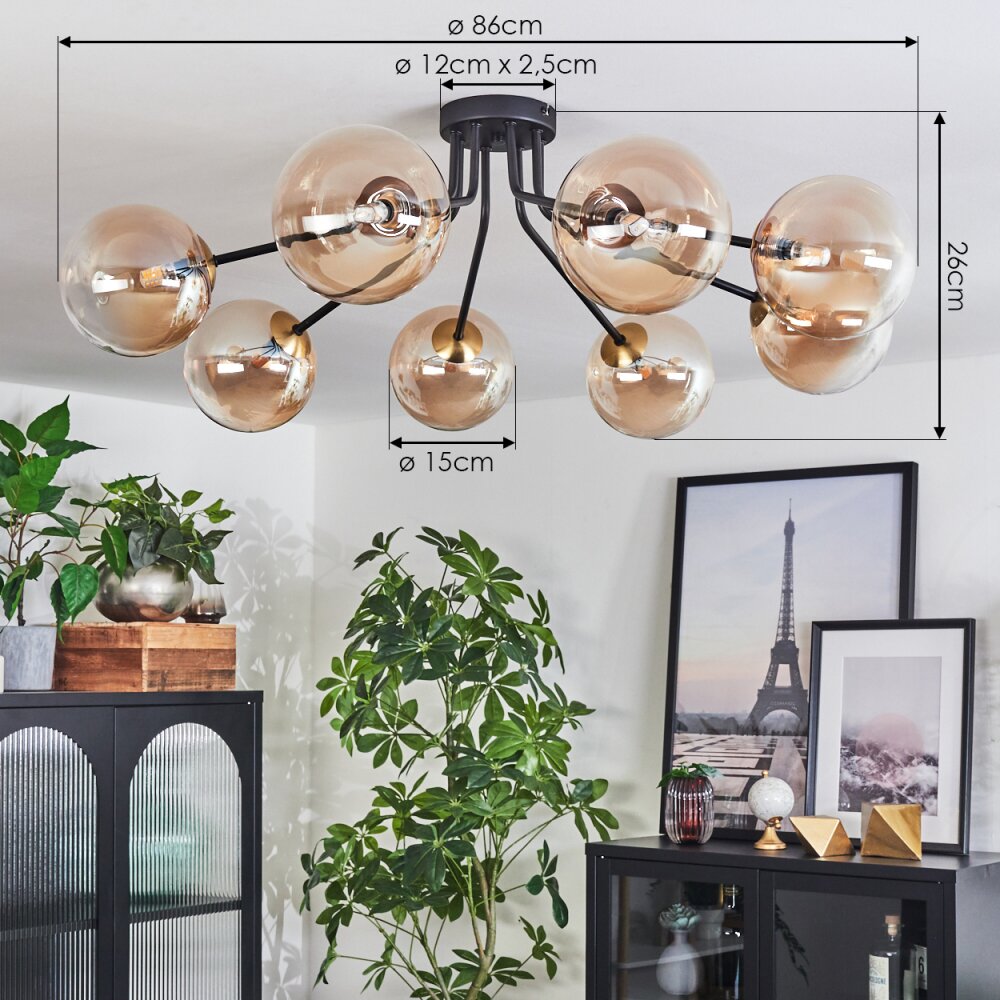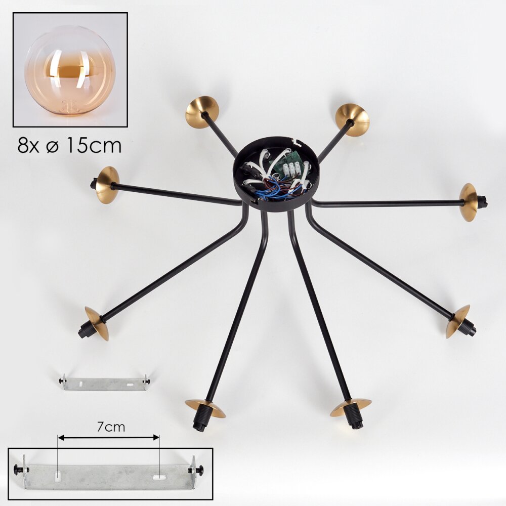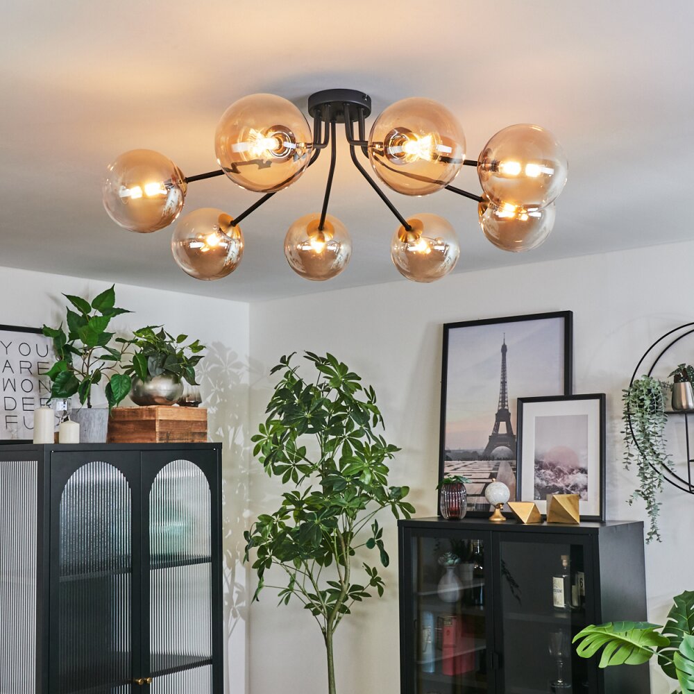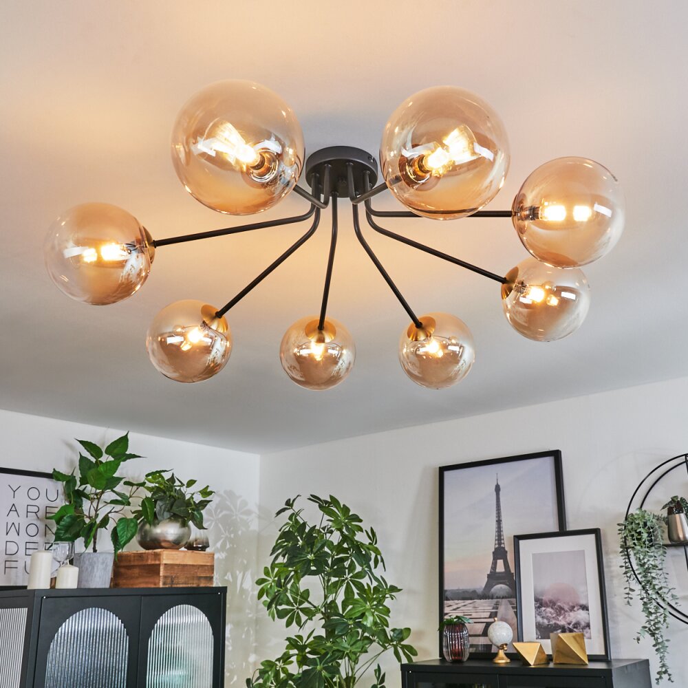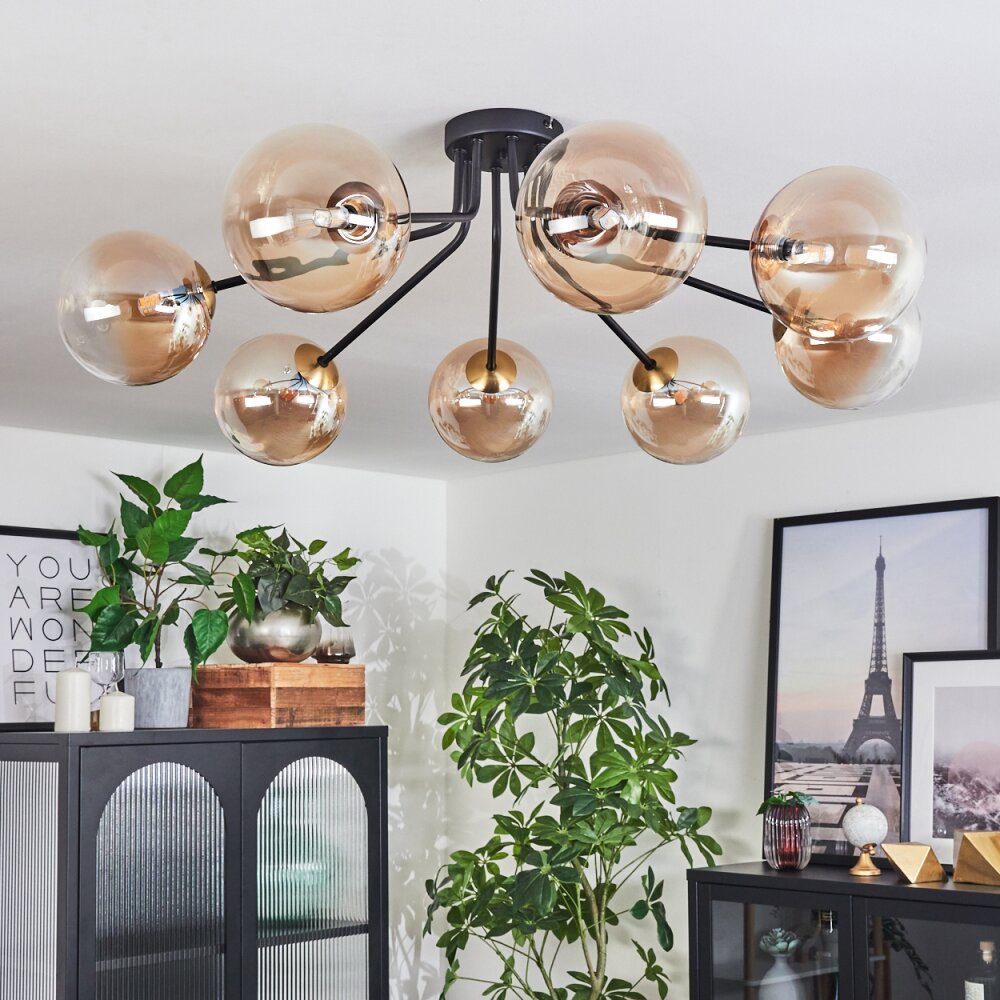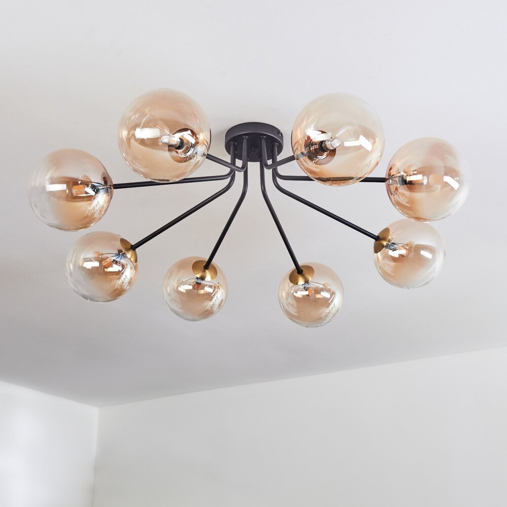 Chehalis Ceiling Light - glass 15 cm gold, black, 8-light sources