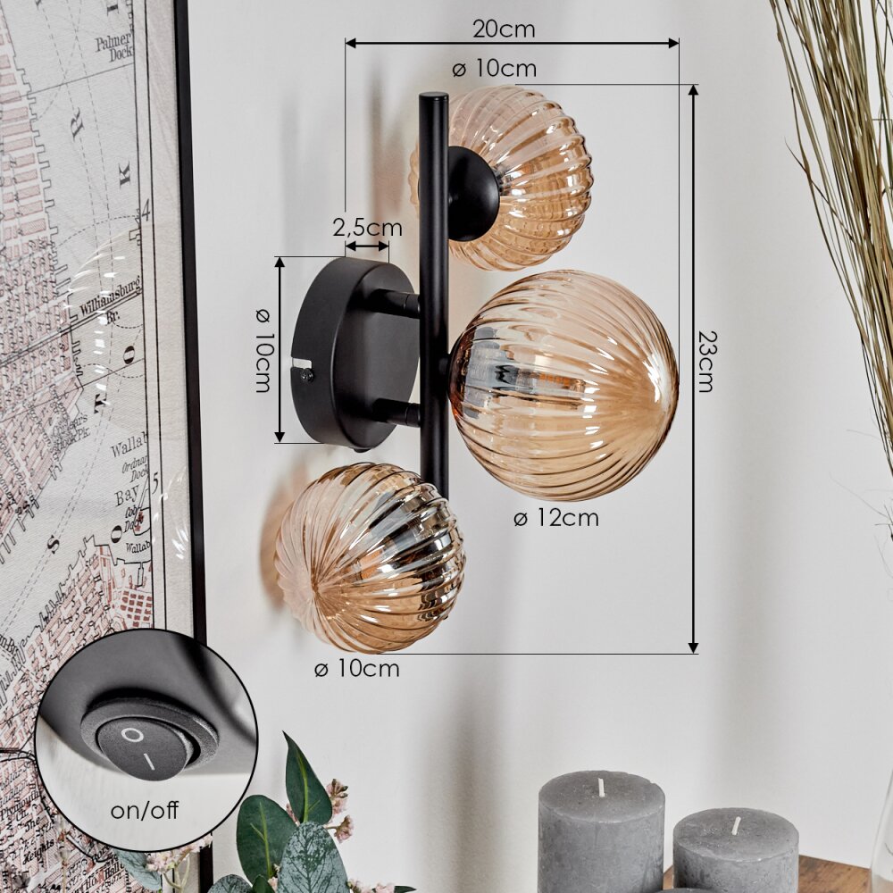 Chehalis Wall Light - glass 10 cm, 12 cm Amber, 3-light sources