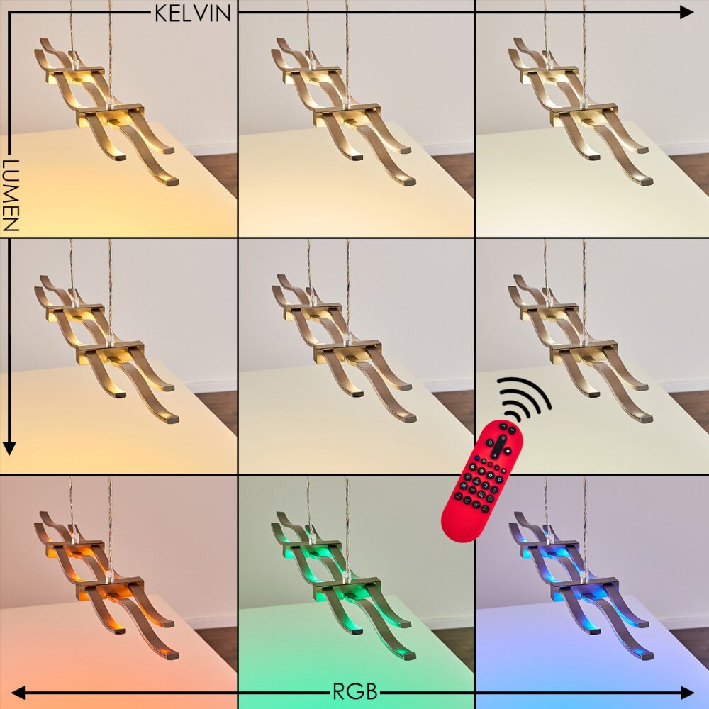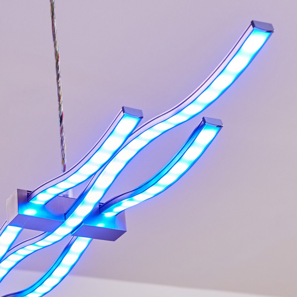 Gamsen Pendant Light LED brushed steel, 3-light sources, Remote control, Colour changer