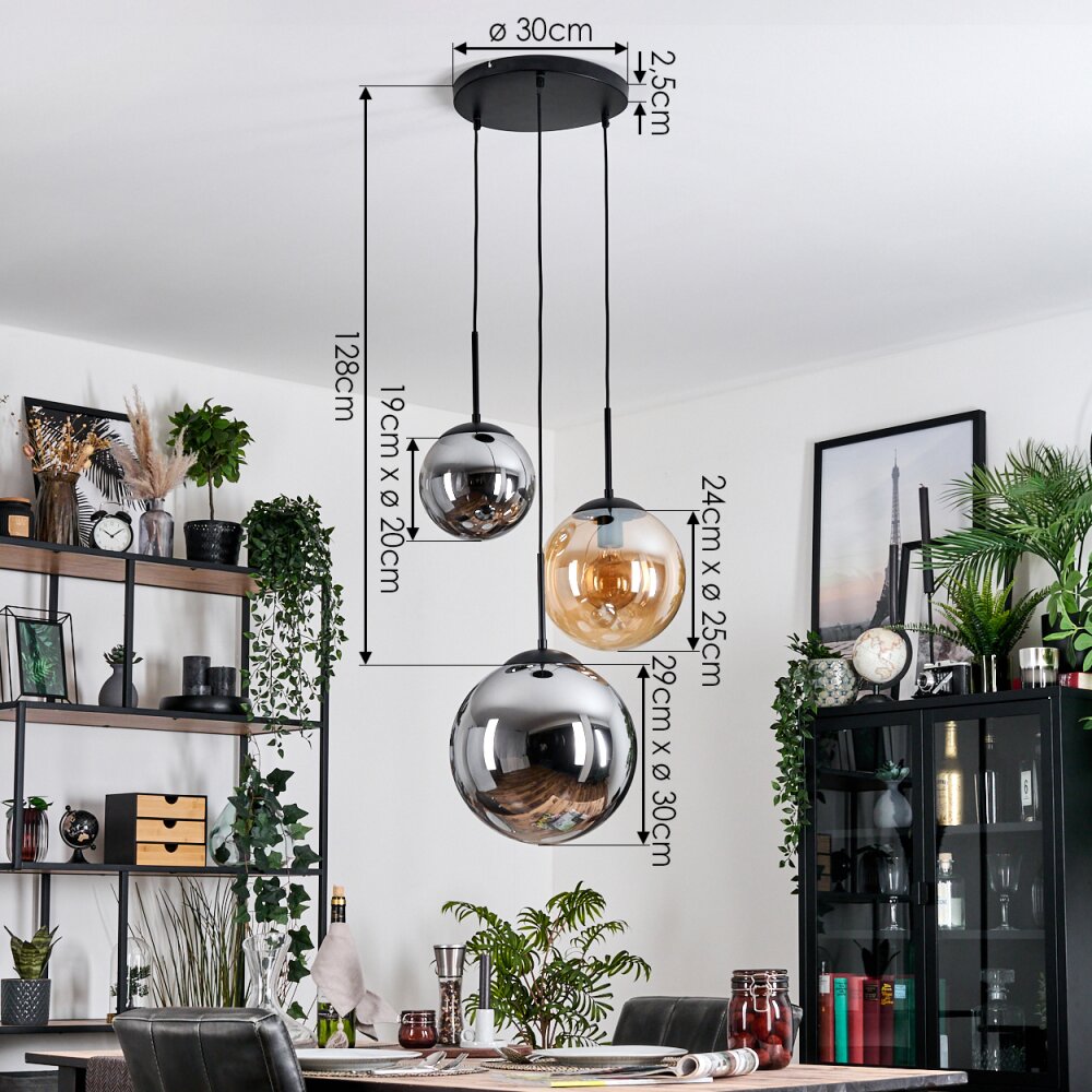 Gastor hanging light, globe light 30 cm Amber, Smoke-coloured, 3-light sources