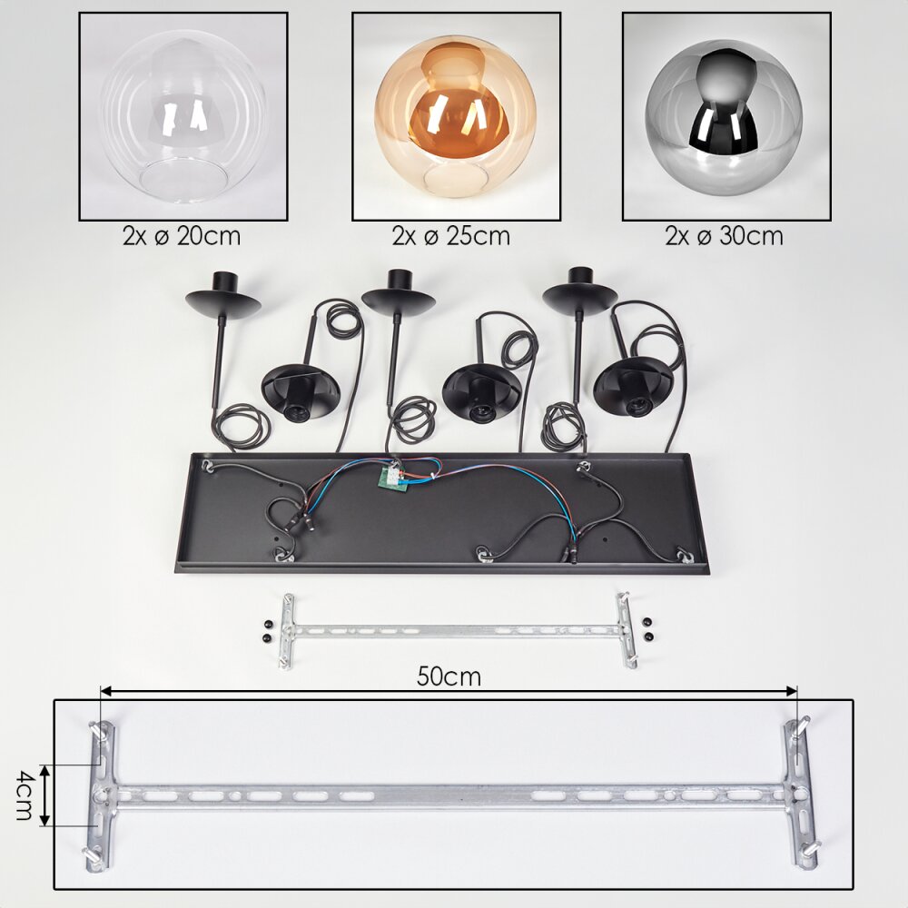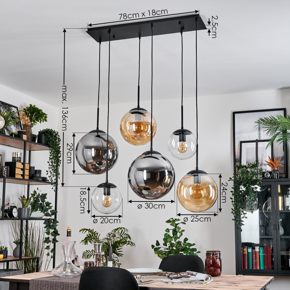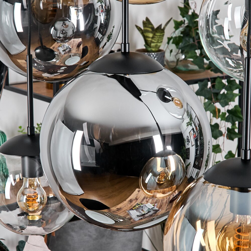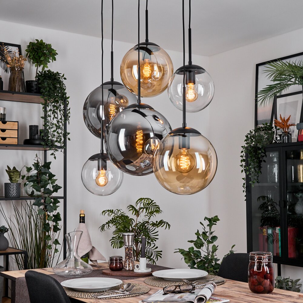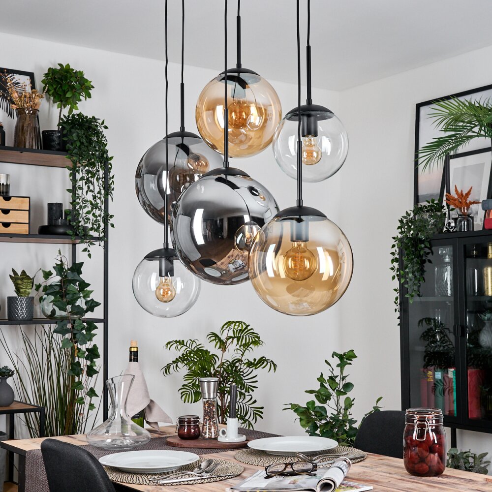 Gastor hanging light, globe light, pendant light Amber, clear, Smoke-coloured, 6-light sources