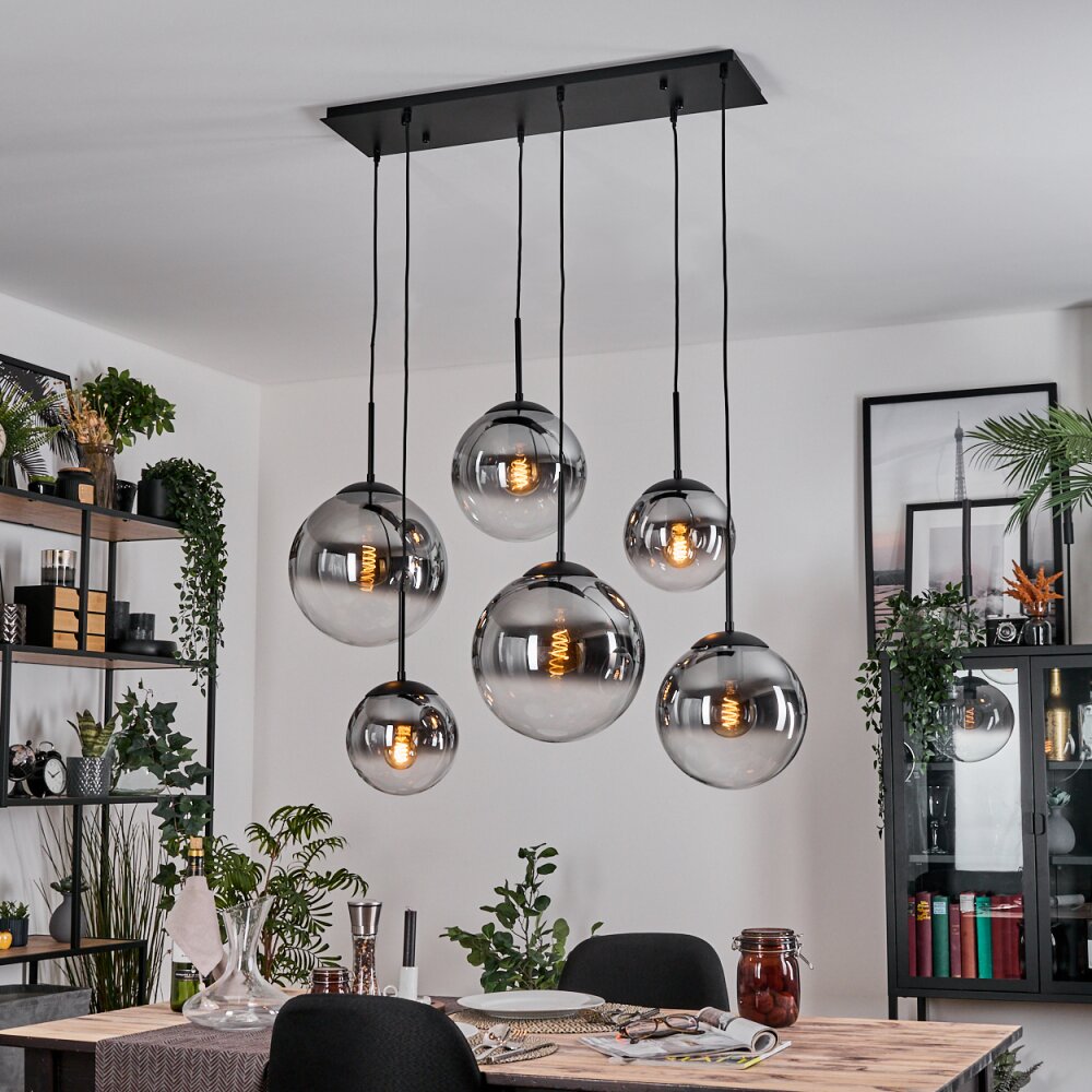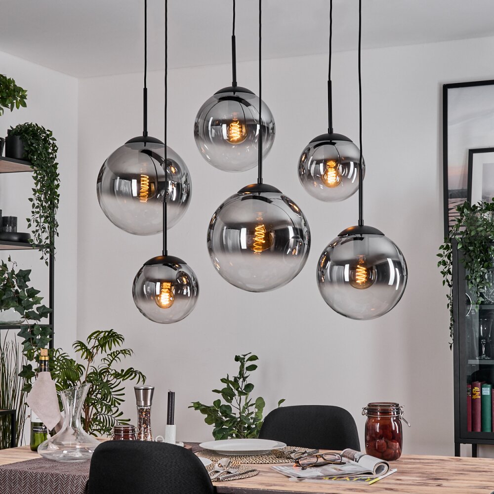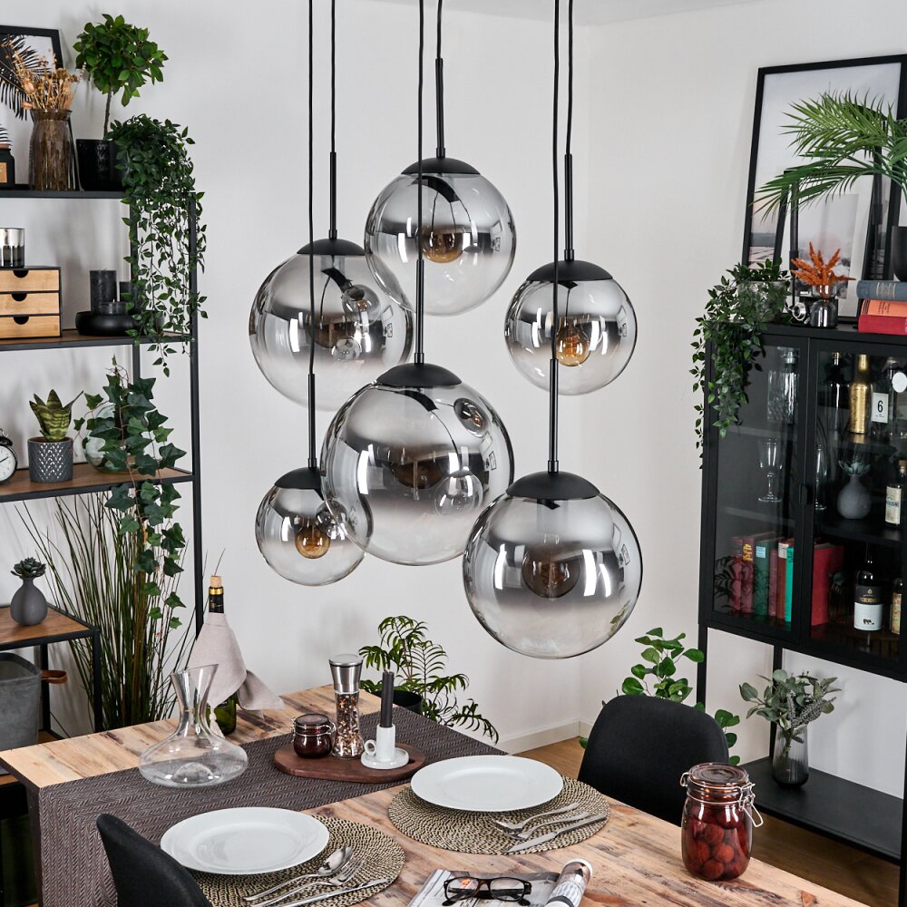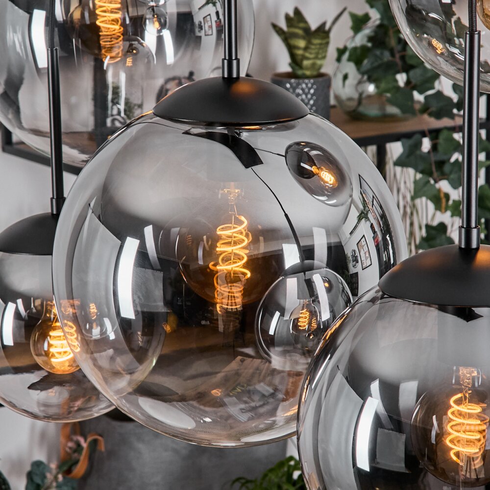 Gastor hanging light, globe light, pendant light clear, Smoke-coloured, 6-light sources