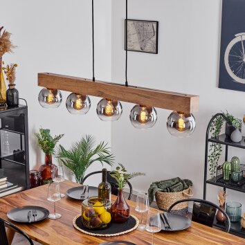 Vouhet Pendant Light brown, Wood like finish, black, 5-light sources