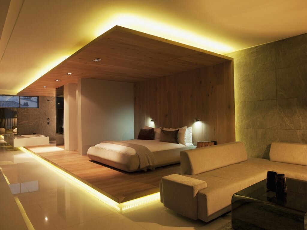 A small tip for all those who want to use cove lighting and indirect light: Projecting ceilings or walls are ideal for indirect lighting because you can easily hide ballasts and cables in the cavities. They create a pleasant lighting atmosphere and are easy to implement with early planning.