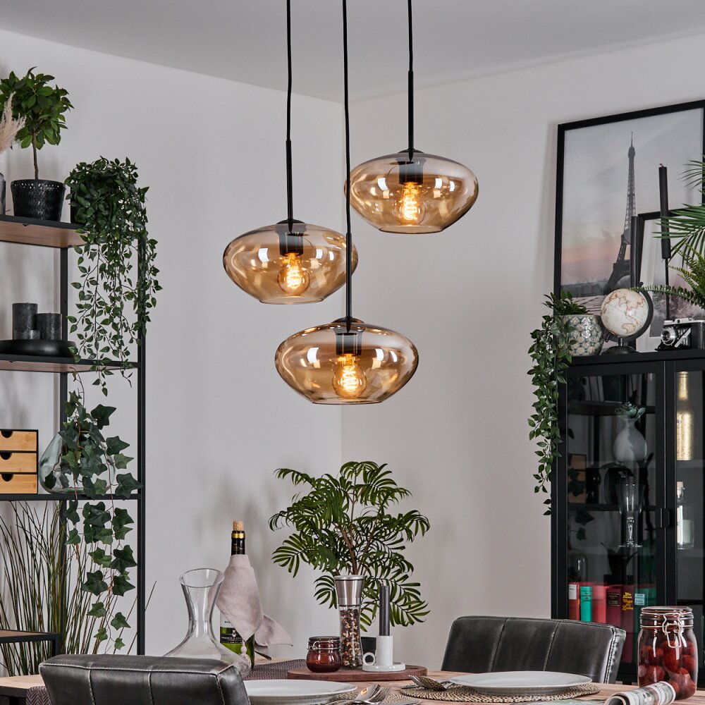 Mertola hanging light, globe light black, 3-light sources