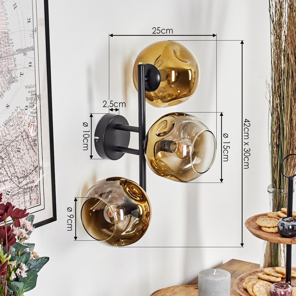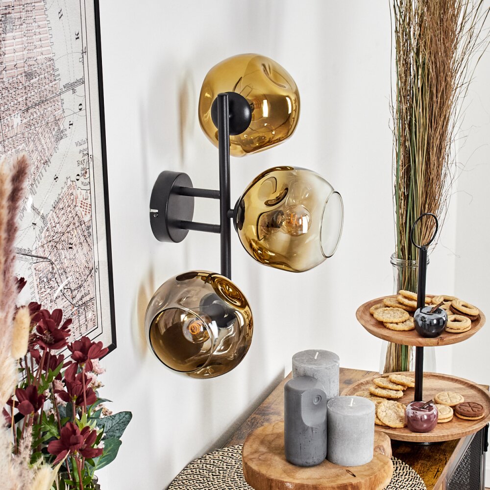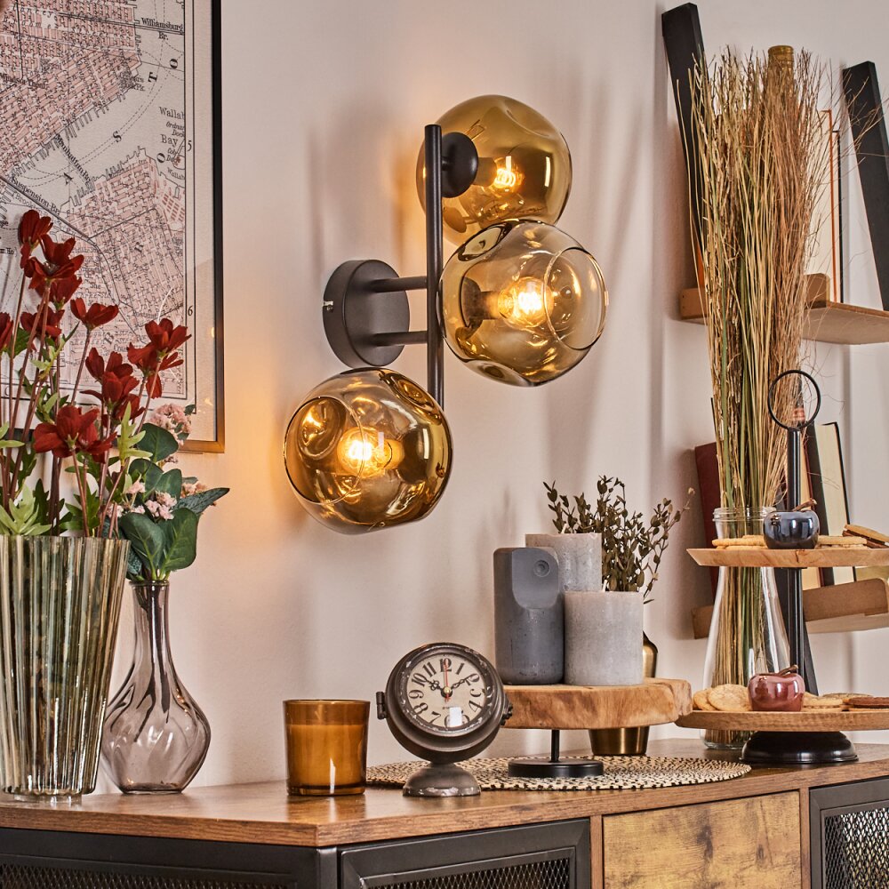 Ripoll globe light, wall light gold, clear, 3-light sources