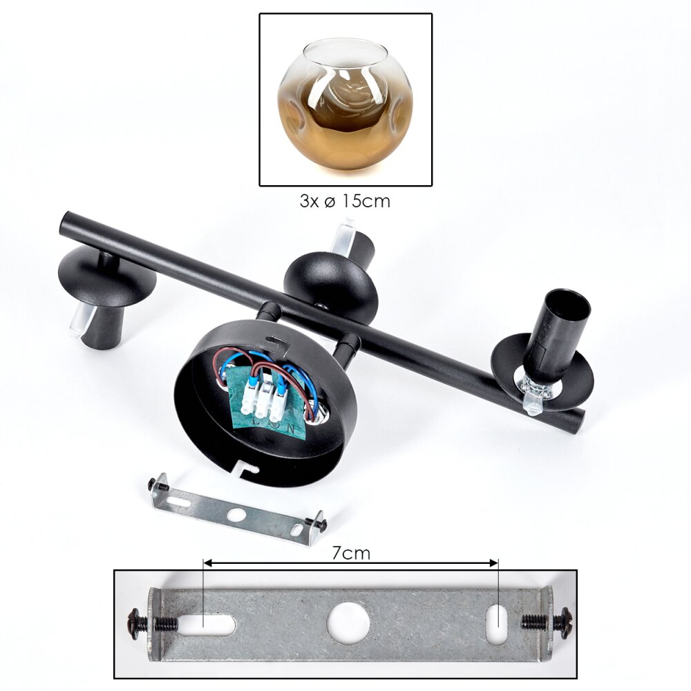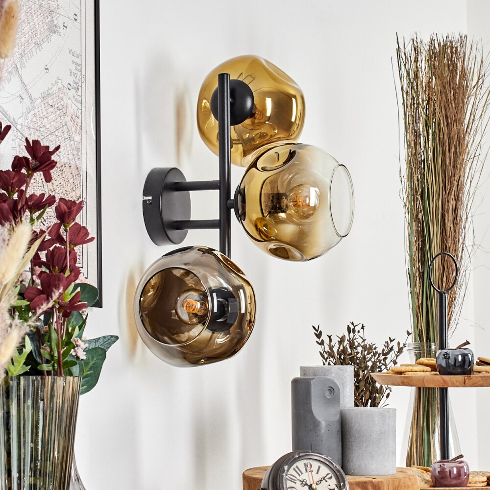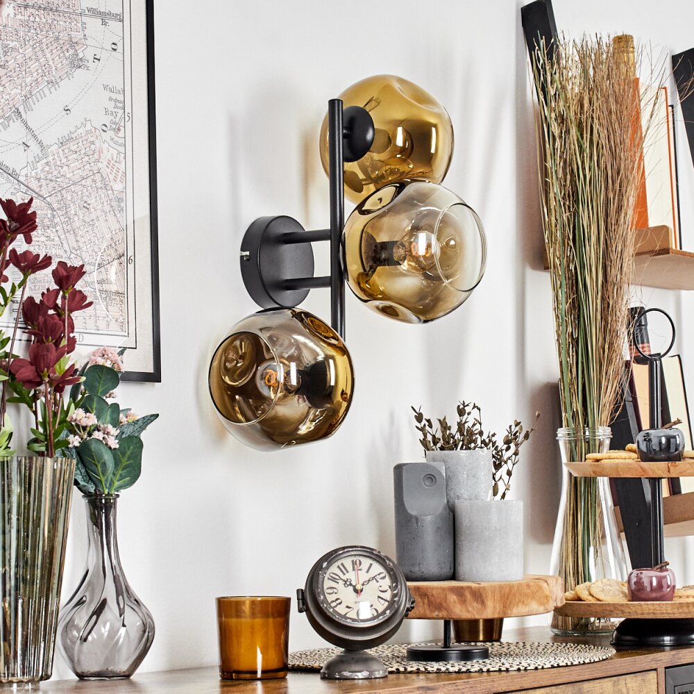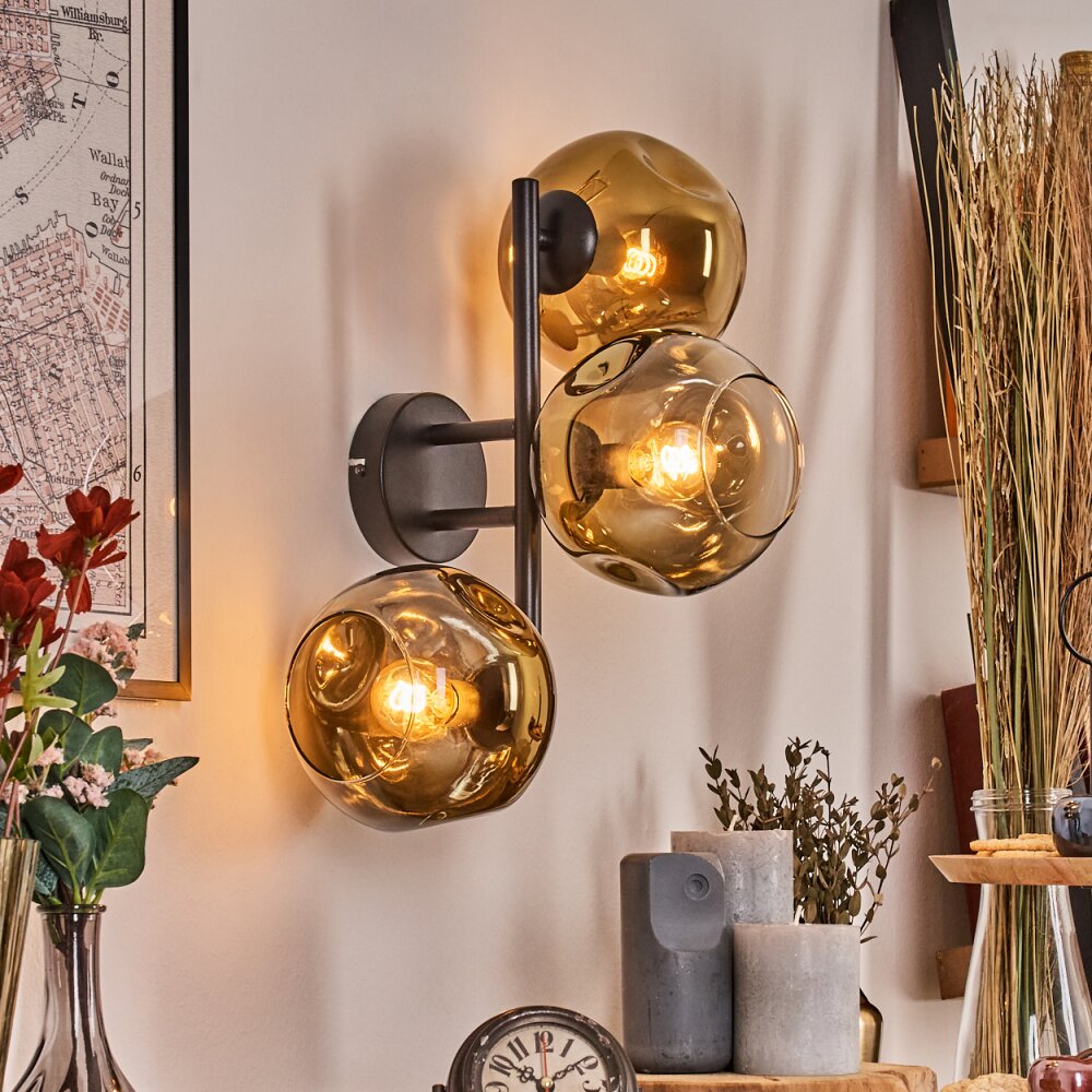 Ripoll globe light, wall light gold, clear, 3-light sources